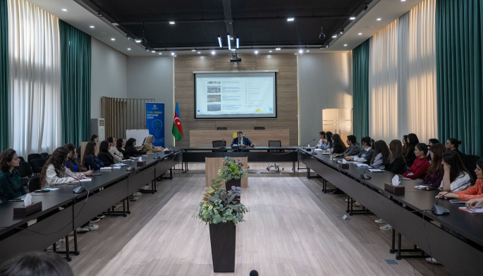 Daha sonra Rəqəmsal İnnovasiyalar Mərkəzinin nümayəndəsi tərəfindən “Rəqəmsal ekologiya və məlumatların idarə olunması” mövzusunda təqdimat keçirilib. Gənclərə ekoloji məlumat bazalarının yaradılması, “yaşıl” texnologiyaların tətbiqi, rəqəmsal monitorinq və ekoloji şəffaflığın artırılması istiqamətində həyata keçirilən layihələr barədə ətraflı məlumatlar verilib.