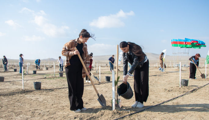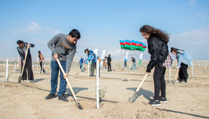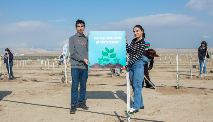 Aksiya çərçivəsində Abşeron yarımadasının torpaq-iqlim şəraitinə uyğun Eldar şamı və zeytun ağacları əkilib.