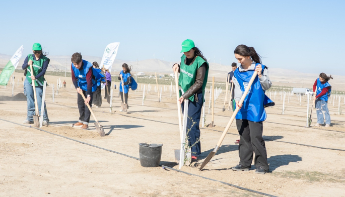 Aksiya çərçivəsində Müşfiqabad qəsəbəsində Abşeron yarımadasının torpaq-iqlim şəraitinə uyğun Eldar şamı və zeytun ağacları əkilib.