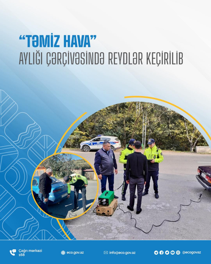 Ekologiya və Təbii Sərvətlər Nazirliyinin Dövlət Ekoloji Təhlükəsizlik Xidmətinin və Daxili İşlər Nazirliyinin Baş Dövlət Yol Polisi İdarəsinin əməkdaşları tərəfindən “Təmiz hava” aylığı çərçivəsində birgə reydlər davam etdirilir.