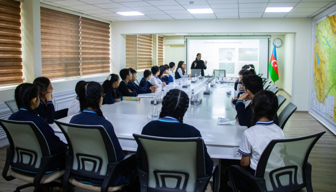Daha sonra məktəblilər Bioloji Müxtəlifliyin Qorunması Xidmətinin rəis müavini Arzu Babayevanın təqdimatında ekosistemlərin rolu, biomüxtəlifliyin qorunması üzrə qlobal çağırışlar, həmçinin təbiətə məsuliyyətli yanaşmanın vacibliyi barədə məlumatlanıblar. Şagirdlərin sualları cavablandırılıb, onların ekoloji yönümlü ideya və təklifləri müzakirə edilib.