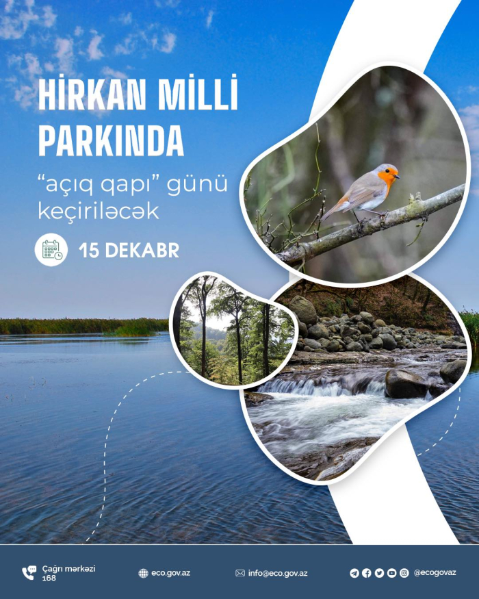“Milli parkları yaxından tanıyaq” devizi ilə növbəti “açıq qapı” günü 15 dekabr tarixində Hirkan Milli Parkında təşkil ediləcək və ziyarətçilər üçün milli parka giriş ödənişsiz olacaq.