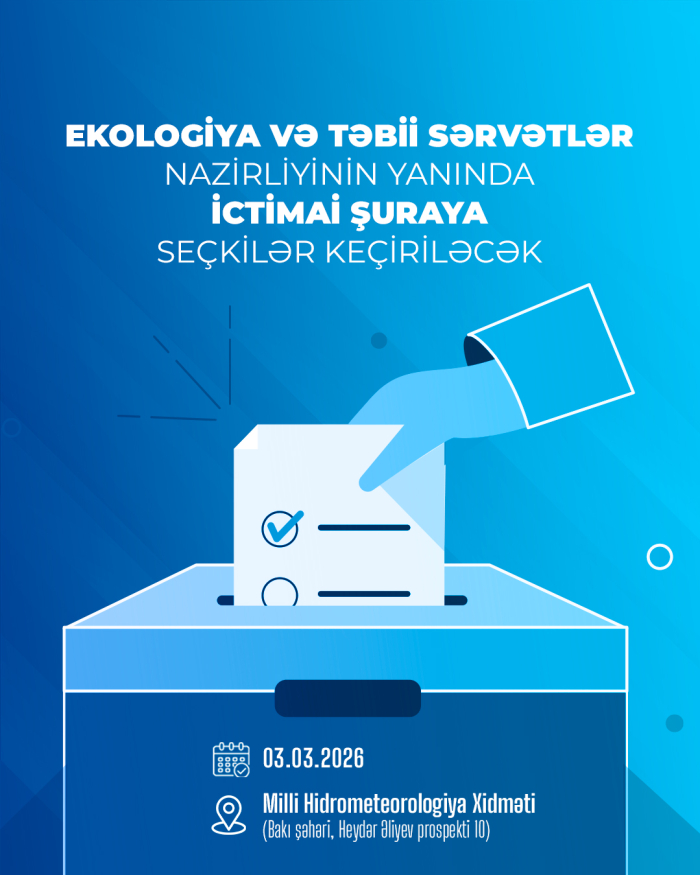 Seçki Komissiyasının qərarına əsasən, İctimai Şura üzvlüyünə seçkilər 03 mart 2026-cı il tarixində saat 11:00-dan 14:00-dək Milli Hidrometeorologiya Xidmətinin inzibati binasında (Bakı şəhəri, Heydər Əliyev prospekti 10) vətəndaş cəmiyyəti institutlarının bərabər sayda təmsilçilərindən ibarət birgə yığıncağı şəklində keçiriləcəkdir.