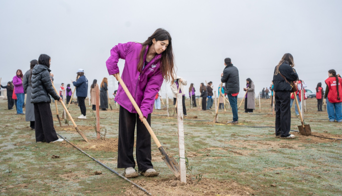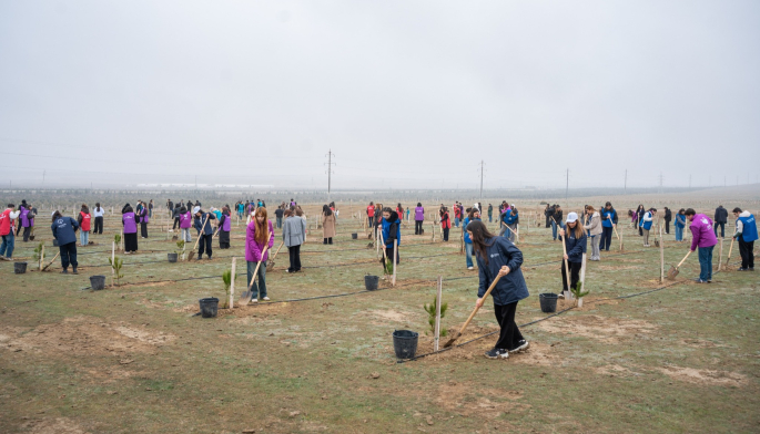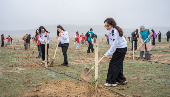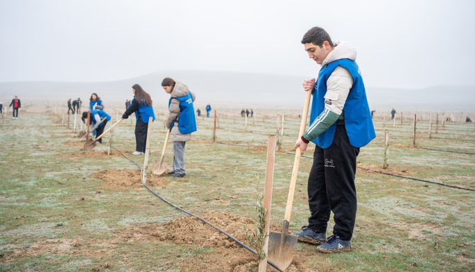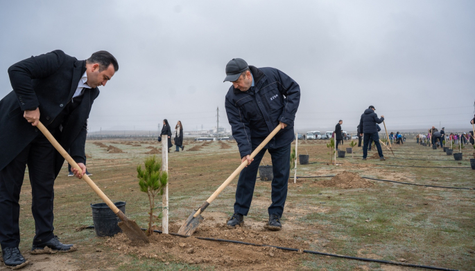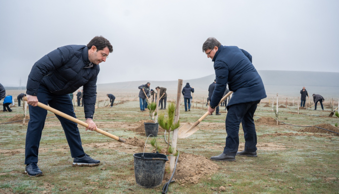 Aksiya zamanı Abşeron yarımadasının torpaq-iqlim şəraitinə uyğun Eldar şamı və zeytun ağacları əkilib.