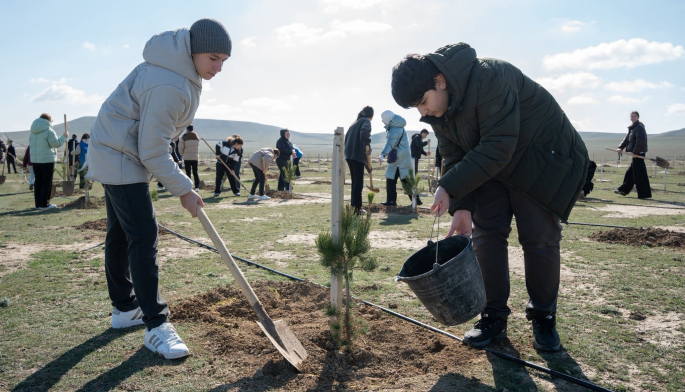 Novruz bayramının ikinci çərşənbəsi olan Od çərşənbəsi münasibətilə təşkil edilən aksiya çərçivəsində Kaspi liseyinin şagirdləri və ekokönüllülərin iştirakı ilə Abşeron yarımadasının torpaq-iqlim şəraitinə uyğun Eldar şamı və zeytun ağacları əkilib.