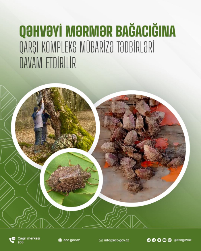 Ekologiya və Təbii Sərvətlər Nazirliyinin, Kənd Təsərrüfatı Nazirliyinin və Azərbaycan Qida Təhlükəsizliyi Agentliyinin aidiyyəti qurumları tərəfindən qəhvəyi mərmər bağacığına qarşı kompleks mübarizə tədbirləri davam etdirilir.