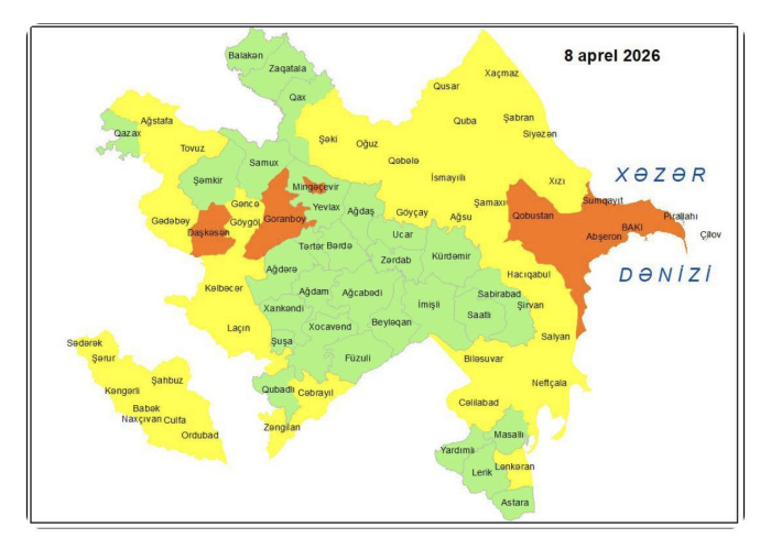 Milli Hidrometeorologiya Xidməti aprelin 8-də Bakıda və Abşeron yarımadasında, eyni zamanda bəzi bölgələrdə gözlənilən küləkli hava şəraiti ilə bağlı sarı və narıncı xəbərdarlıq verib.