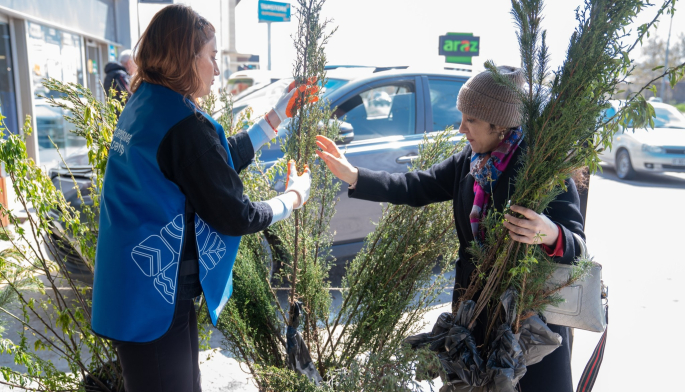 Aksiya çərçivəsində vətəndaşlar ümumi tutumu 306 litr olan şüşə tullantı və 85 ədəd işlənmiş batareya təhvil verərək əvəzində Eldar şamı, sərv və badam tingləri əldə ediblər.
