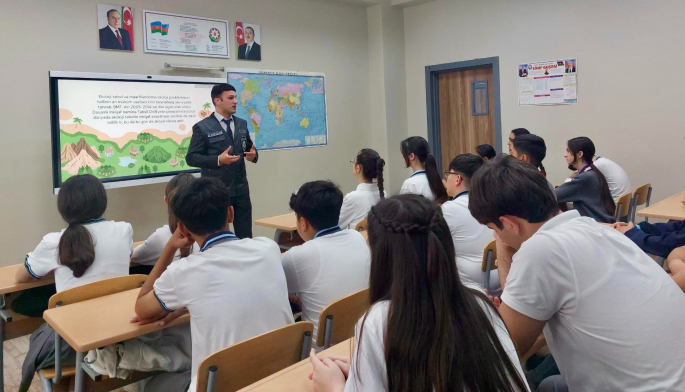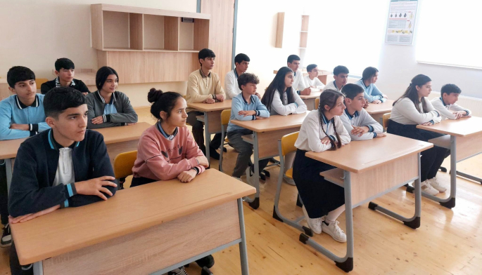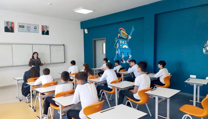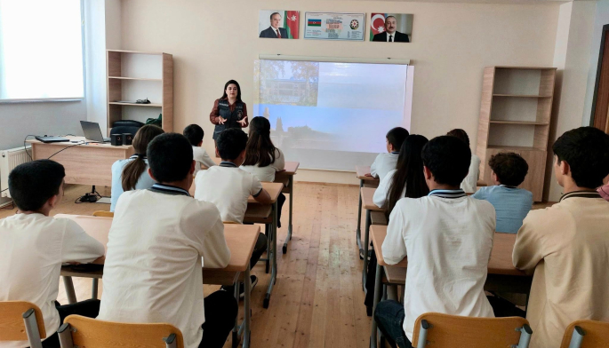 “Şəhərsalma və Memarlıq İli” çərçivəsində baş tutan görüşlərdə məktəblilərlə fikir mübadiləsi aparılıb, onların sualları cavablandırılıb.