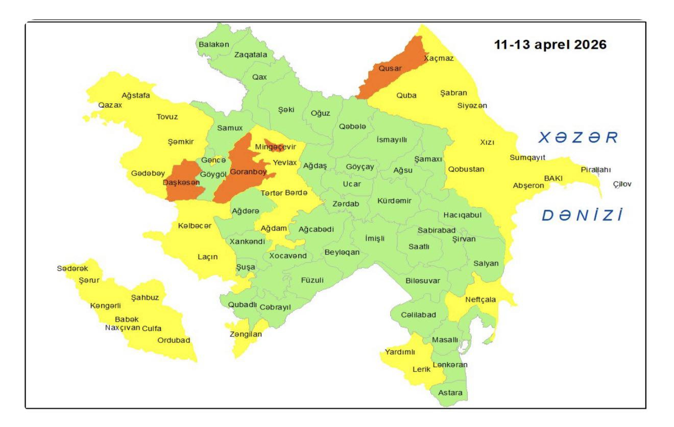 Küləkli hava şəraiti ilə bağlı sarı və narıncı xəbərdarlıq verilibMilli Hidrometeorologiya Xidməti aprelin 11-13-də Bakıda və Abşeron yarımadasında, eyni zamanda bəzi bölgələrdə gözlənilən küləkli hava şəraiti ilə bağlı sarı və narıncı xəbərdarlıq verib.