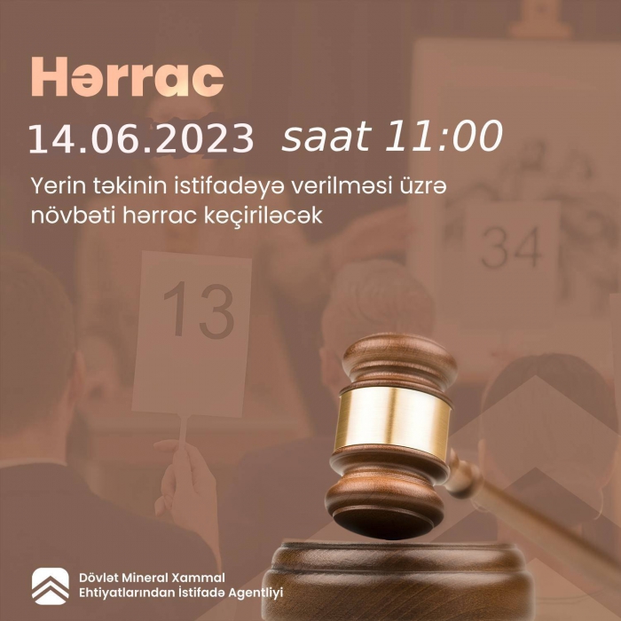 Yer təkindən istifadə ilə bağlı 14 iyun 2023-cü il tarixində saat 11:00-da keçiriləcək hərracın elanı
