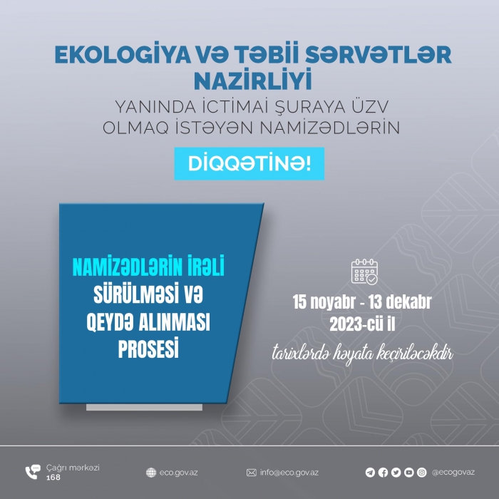 Azərbaycan Respublikası Ekologiya və Təbii Sərvətlər Nazirliyi yanında İctimai Şuranın yeni tərkibinin formalaşdırılması barədə ELAN