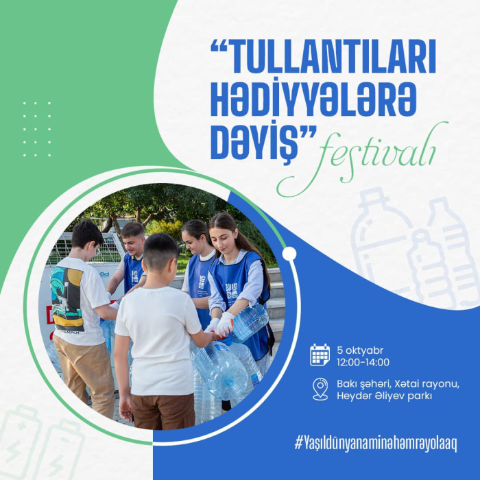 Qeyd edək ki, müxtəlif tədbirlərin də yer alacağı festivalda tullantıları gətirərək həm təbiətə töhfə verə, həm də müxtəlif hədiyyələr qazana bilərsiniz.