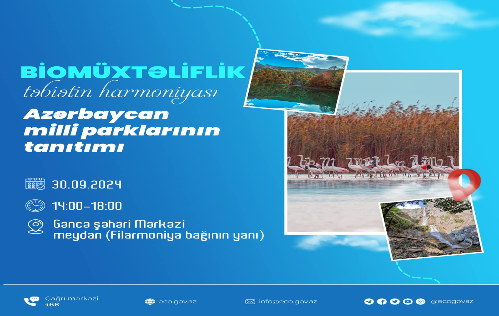 04 Noyabr 2024 Noyabrın 7-də Ekologiya və Təbii Sərvətlər Nazirliyinin təşkilatçılığı, “Bravo” supermarketlər şəbəkəsinin dəstəyi ilə “Tullantıları tinglərə dəyiş” aksiyası keçiriləcək. 29 Oktyabr 2024 Noyabrın 1-də Ekologiya və Təbii Sərvətlər Nazirliyinin təşkilatçılığı, “Bravo” marketlər şəbəkəsinin dəstəyi ilə “Tullantıları tinglərə dəyiş” aksiyası keçiriləcək. 03 Oktyabr 2024 İctimaiyyətin tullantıların düzgün idarə olunması barədə maarifləndirilməsi, çeşidləmə vərdişlərinin stimullaşdırılması məqsədilə 5 oktyabr tarixində növbəti “Tullantıları hədiyyələrə dəyiş” festivalı Bakı şəhəri Xətai rayonu ərazisində yerləşən Heydər Əliyev parkında keçiriləcək. 30 Sentyabr 2024 Bu gün saat 14:00-da Gəncə şəhəri Mərkəzi meydan adlanan ərazidə Ekologiya və Təbii Sərvətlər Nazirliyinin təşkilatçılığı, Gəncə Şəhər İcra Hakimiyyətinin dəstəyi ilə “Azərbaycanın milli parklarının tanıtımı” adlı tədbir keçiriləcək. 26 Sentyabr 2024 Azərbaycanın Yenilənmiş Milli Səviyyədə Müəyyən Edilmiş Töhfələr (NDC) və Uzunmüddətli Aşağıkarbonlu İnkişaf Strategiyasının (LTS) hazırlanması üzrə geniş ictimai müzakirələr aparmaqdadır.