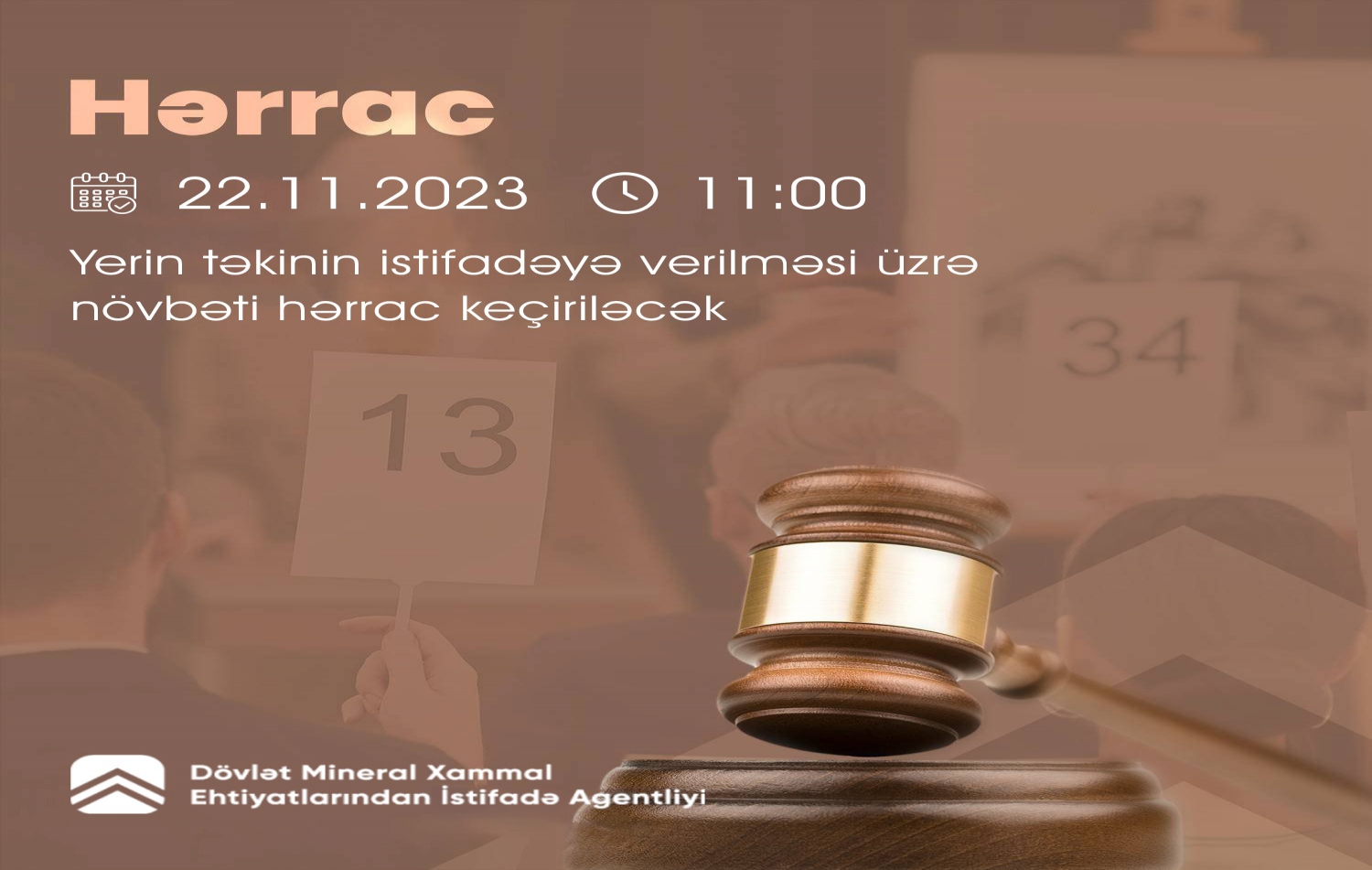Yer təkindən istifadə ilə bağlı 22 noyabr 2023-cü il tarixində saat 11:00-da keçiriləcək hərracın elanıHərracın elanı, qum-çınqıl yatağının koordinatı və peyk görüntüsü ilə buradan tanış ola bilərsiniz.