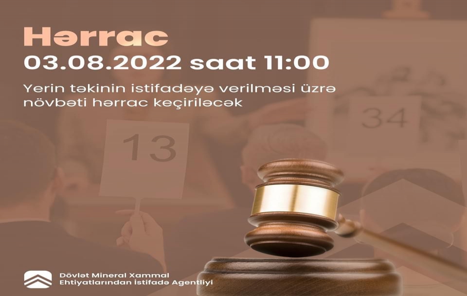 30 İyun 2022 Yer təkindən istifadə ilə bağlı 03 avqust 2022-ci il tarixində saat 11:00-da keçiriləcək hərracın elanı