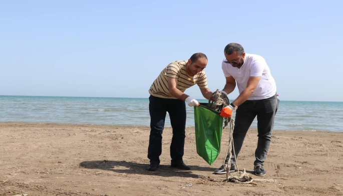 Aksiya çərçivəsində Nazirliyin, “MİR” Dövlətlərarası Teleradio Şirkətinin Azərbaycan Milli Nümayəndəliyinin əməkdaşlarının, ekokönüllülərin iştirakı ilə Xəzər dənizinin Sumqayıt sahili 200 kiloqramdan artıq tullantıdan təmizlənib.