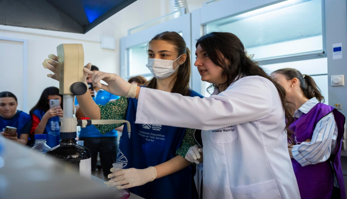 “Laboratoriya şəraitində analizlərin aparılması üsulları” mövzusunda təşkil olunan təlim zamanı “Azelab” MMC-nin mütəxəssisləri tərəfindən gənclərə laboratoriya sahəsində biliklərin artırılması, real iş mühitində su və torpaq nümunələrinin tərkibinin təyin olunması, spektrometrik və titrimetrik analiz metodları göstərilib, makroorqanizmlər hidrobioloji analiz üsulu ilə təyin olunaraq makroorqanizmlərin növünü təyin etmək üçün işıq mikroskopunda baxılıb.