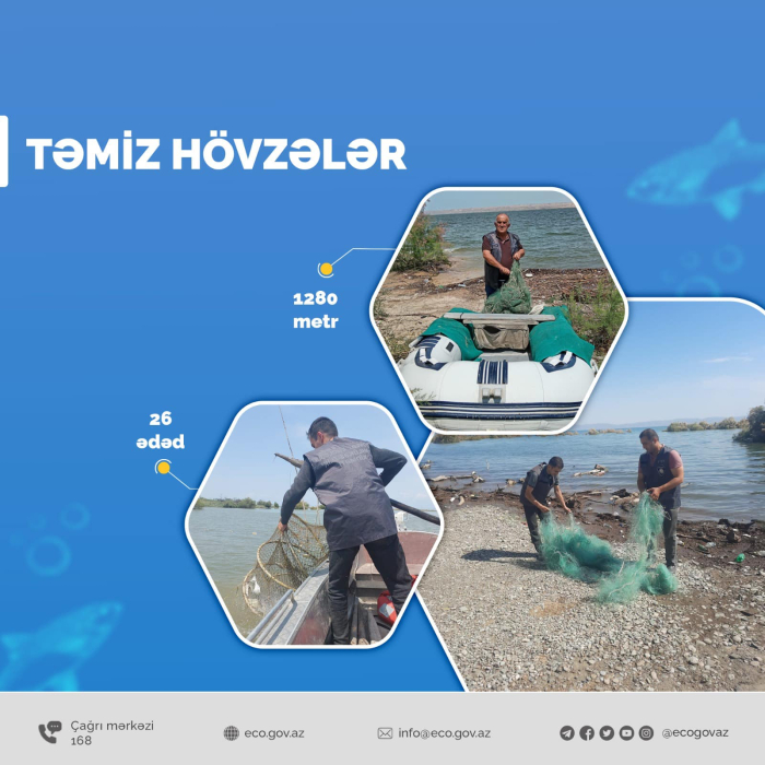 Dövlət Ekoloji Təhlükəsizlik Xidmətinin əməkdaşları tərəfindən Xəzər dənizinin Xaçmaz rayonu akvatoriyasından, Kür çayından, Şəmkir, Mingəçevir və Yenikənd su anbarlarından ümumilikdə 1280 metr uzunluğunda 26 ədəd sintetik tor və istifadəsi qadağan olunmuş digər ov alətləri aşkar edilərək götürülüb. Aksiya çərçivəsində tədbirlər davam etdirilir.