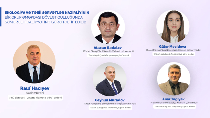 Ekologiya və təbii sərvətlər nazirinin müavini Hacıyev Rauf Vahid oğlu 3-cü dərəcəli “Vətənə xidmətə görə” ordeni ilə, ETSN-in bir qrup əməkdaşı isə “Dövlət qulluğunda fərqlənməyə görə” medalı ilə təltif olunub: