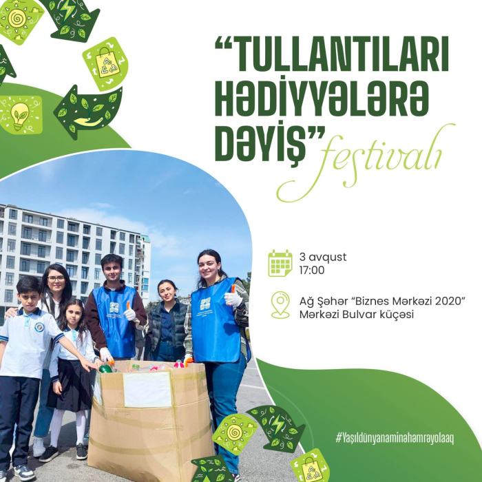 Qeyd edək ki, maraqlı viktorinalar, müxtəlif tədbirlərin də yer alacağı festivalda tullantıları gətirərək həm təbiətə töhfə verə, həm də müxtəlif hədiyyələr qazana bilərsiniz.