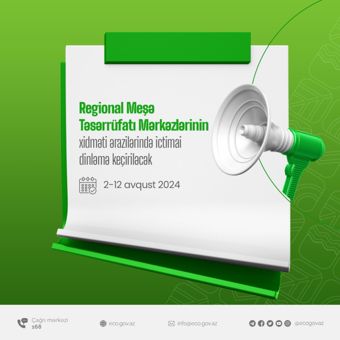 4 saylı Regional Meşə Təsərrüfatı Mərkəzi üzrə 5 avqust 2024-cü il tarixində oduncaq tədarükü ilə əlaqədar aşağıda göstərilən ərazilərdə ictimai dinləmə keçiriləcək: