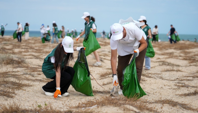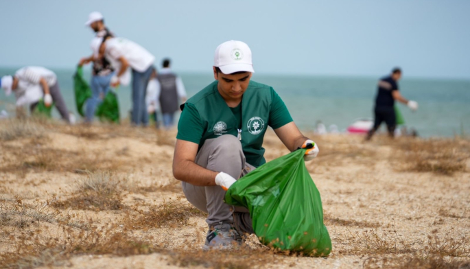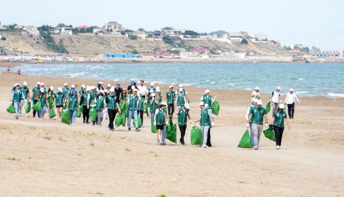 Ümumrespublika Təmizlik Marafonu çərçivəsində Xəzər dənizinin Novxanı sahili tullantılardan təmizlənib