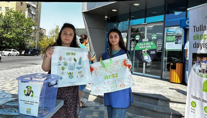 Ekologiya və Təbii Sərvətlər Nazirliyinin təşkilatçılığı, “Araz” supermarketlər şəbəkəsinin dəstəyi ilə “Tullantıları ekoçantaya dəyiş” aksiyası Araz supermarketin Nizami rayonu filialında keçirilib.