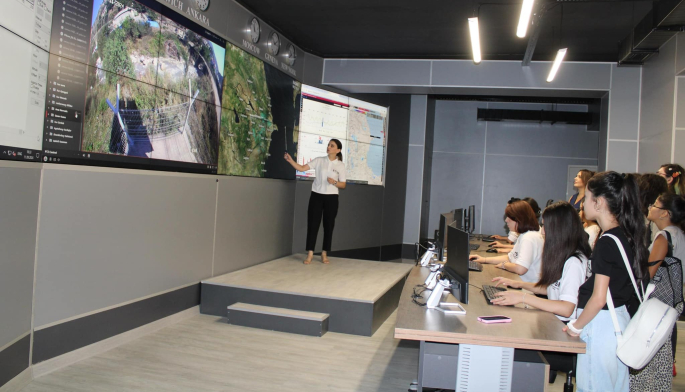 Daha sonra Situasiya Mərkəzində şagirdlərə hidrometeoroloji müşahidələrin təşkili, hidrometeoroloji məlumatların qəbulu, emalı, vizuallaşması, həmçinin əldə edilmiş məlumatlar əsasında hava proqnozunun hazırlanması prosesi izah olunub.