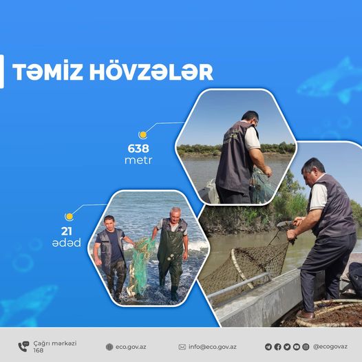 Dövlət Ekoloji Təhlükəsizlik Xidmətinin əməkdaşları tərəfindən Xəzər dənizinin Bakı şəhəri, Lənkəran və Astara rayonlarının akvatoriyasından, Xanbulançay su anbarından, Kür çayının Neftçala və Salyan, Baş Şirvan kollektorunun Şirvan və Salyan, Baş Mil Muğan kollektorunun isə Neftçala və Biləsuvar rayonlarından keçən hissəsindən ümumilikdə 638 metr uzunluğunda 21 ədəd sintetik tor və istifadəsi qadağan olunmuş digər ov alətləri aşkar edilərək götürülüb.