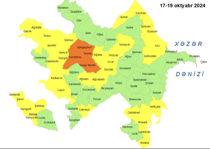 Milli Hidrometeorologiya Xidməti oktyabrın 17-si gündüzdən 19-u gündüzədək bəzi bölgələrdə küləkli hava şəraiti ilə bağlı sarı və narıncı xəbərdarlıq verib.