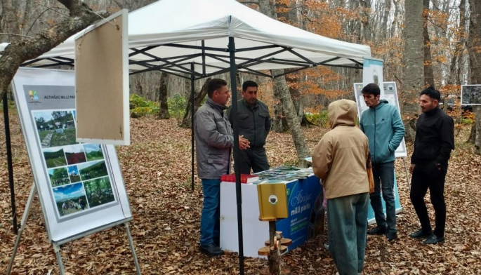Eyni zamanda Altıağac Milli Parkının Qızılqazma piknik nöqtəsində milli parkın tanıtım stendi qurulub, parka gələn turistlərə xüsusi mühafizə olunan təbiət ərazilərinin əhəmiyyəti barədə məlumatlar verilib.