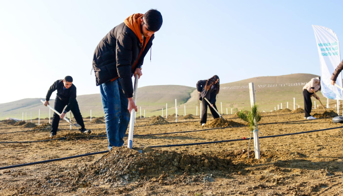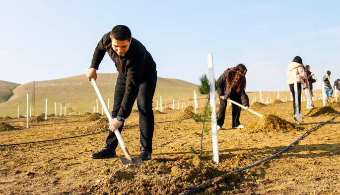 Azərbaycan Dövlət İqtisad Universitetinin tələbələrinin və 132-134 nömrəli Təhsil Kompleksinin şagirdlərinin iştirak etdiyi aksiyada Abşeron yarımadasının torpaq-iqlim şəraitinə uyğun Eldar şamı və zeytun ağacları əkilib.