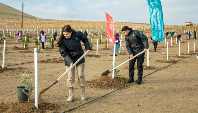 “Yaşıl dünya naminə həmrəylik ili” çərçivəsində Bakının Müşfiqabad qəsəbəsində keçirilən “Yaşıl fidanlar” ağacəkmə aksiyası zamanı Abşeron yarımadasının torpaq-iqlim şəraitinə uyğun 2000-ə yaxın Eldar şamı və zeytun ağacı əkilib.