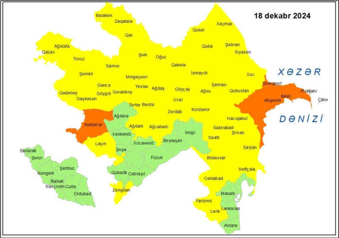 Milli Hidrometeorologiya Xidməti dekabrın 18-də Bakıda və Abşeron yarımadasında, eyni zamanda bəzi bölgələrdə gözlənilən küləkli hava şəraiti ilə bağlı sarı və narıncı xəbərdarlıq verib.