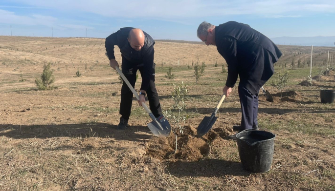 Daha sonra iştirakçılar Cəbrayıl şəhərinin yaxınlığındakı “Azərbaycan Yaşıllaşdırma və Landşaft Quruluşu” ASC-nin əkin ərazisində keçirilən ağacəkmə aksiyasında iştirak edib və zeytun ağacları əkiblər.