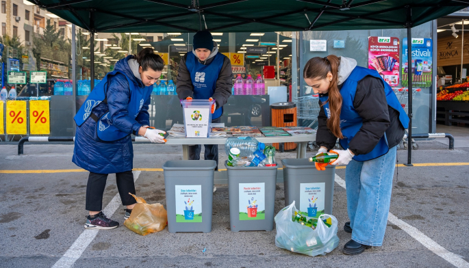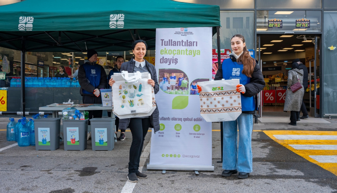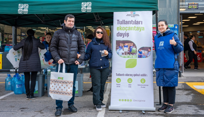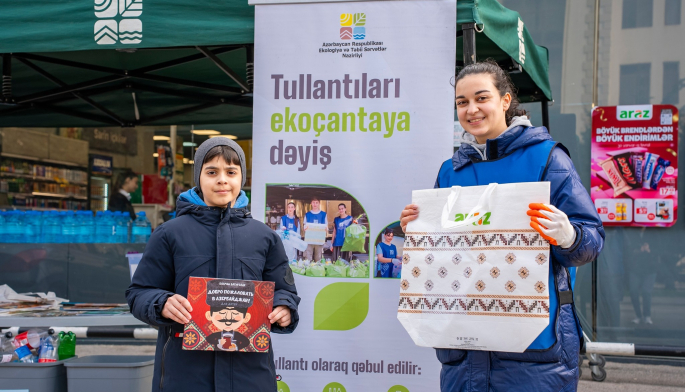 Ekologiya və Təbii Sərvətlər Nazirliyi və “Araz” supermarketlər şəbəkəsinin birgə təşkilatçılığı ilə “Tullantıları dəyərə, ekoçantanı vərdişə çevir” devizi altında cari ilin ilk aksiyası Xətai rayonu, Ceyhun Həsənov küçəsində yerləşən “Araz” supermarketin qarşısında keçirilib.