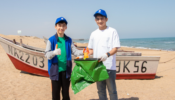 Məktəblilər Xəzər dənizinin Bilgəh sahilini tullantılardan təmizləyib