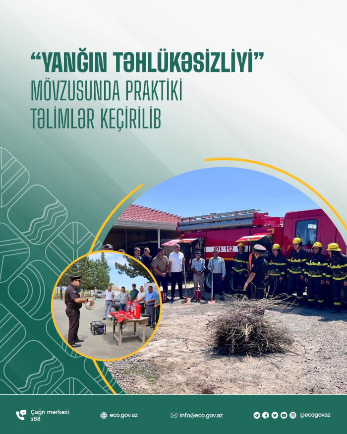 Yaşıllıq ərazilərdə baş verə biləcək yanğın hadisələrinin qarşısının alınması məqsədilə Altıağac, Şirvan və Ağgöl milli parklarında, Türyançay Dövlət Təbiət Qoruğunda FHN-in Regional Dövlət Yanğın Nəzarəti İdarəsinin əməkdaşlarının, yerli sakinlərin iştirakı ilə “Yanğın təhlükəsizliyi” mövzusunda təlimlər keçirilib.