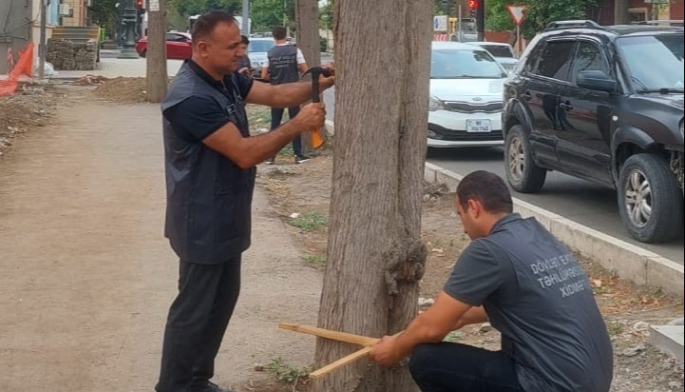 Gəncədə qurumuş ağacların elektron nişanlanmasına start verildi