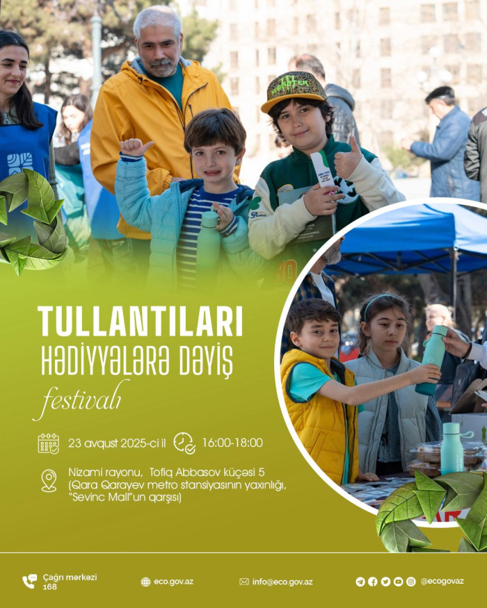 Qeyd edək ki, maraqlı interaktiv tədbirlərin də yer alacağı festivalda tullantıları gətirərək həm təbiətə töhfə verə, həm də müxtəlif hədiyyələr qazana bilərsiniz.