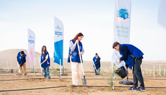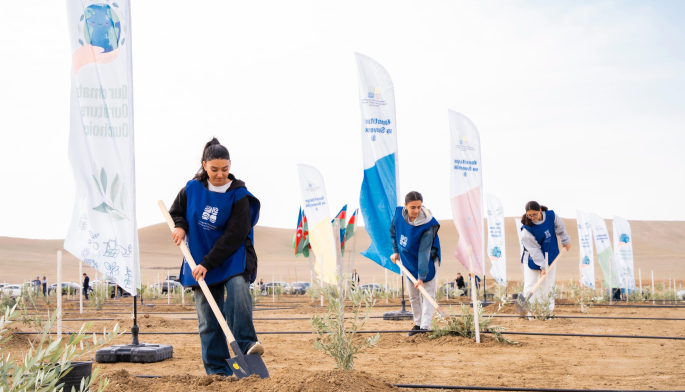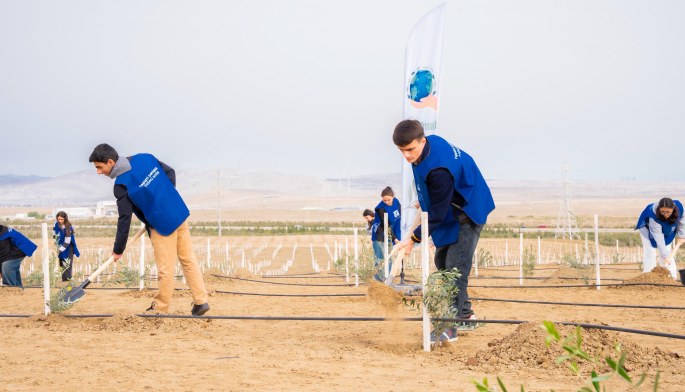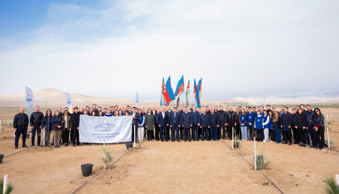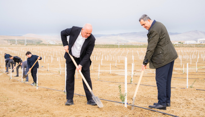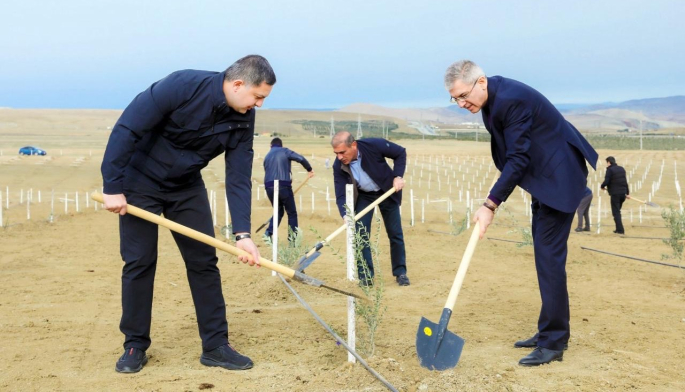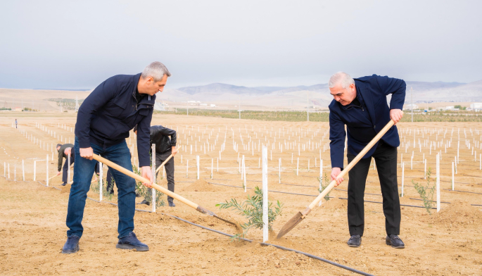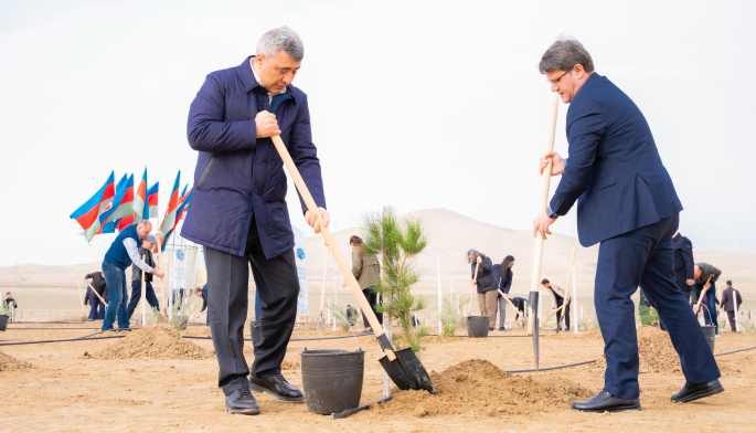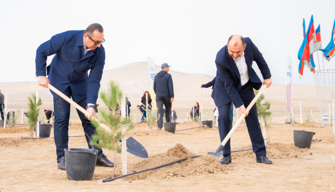 Tədbir çərçivəsində Abşeron yarımadasının torpaq-iqlim şəraitinə uyğun Eldar şamı və zeytun ağacları əkilib.