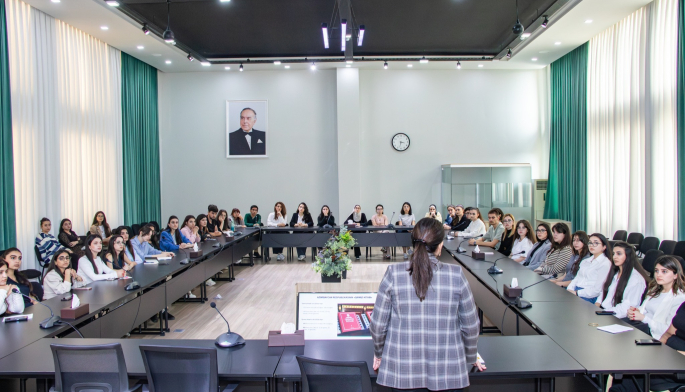 Daha sonra Bioloji Müxtəlifliyin Qorunması Xidmətinin rəis müavini Arzu Babayeva tərəfindən “Bioloji müxtəlifliyin qorunması və davamlı gələcək” mövzusunda təqdimat nümayiş etdirilib. Gənclərə ekosistemlərin əhəmiyyəti, biomüxtəlifliyin qorunmasının qlobal çağırışları, təbiətə məsuliyyətli yanaşmanın vacibliyi barədə ətraflı məlumatlar verilib, gənclərin sualları cavablandırılıb.
