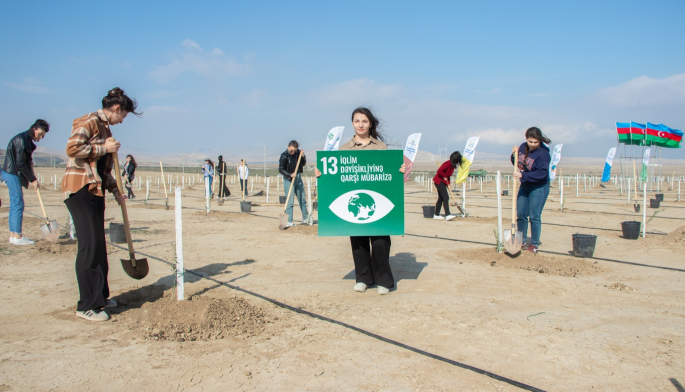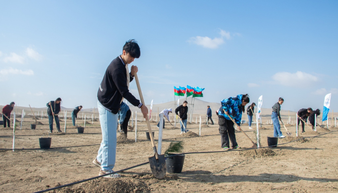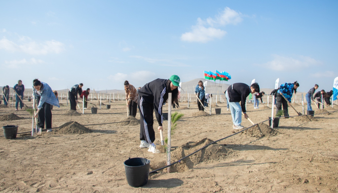 Aksiya çərçivəsində Abşeron yarımadasının torpaq-iqlim şəraitinə uyğun Eldar şamı və zeytun ağacları əkilib.