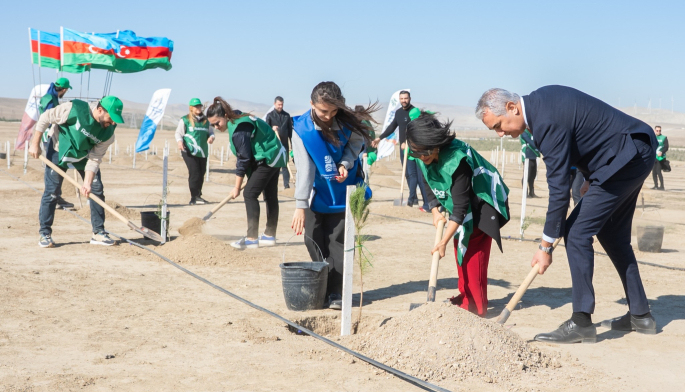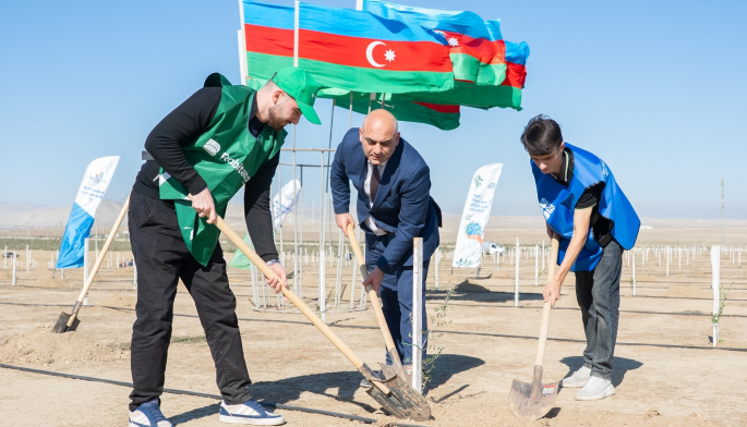 Aksiya çərçivəsində Müşfiqabad qəsəbəsində Abşeron yarımadasının torpaq-iqlim şəraitinə uyğun Eldar şamı və zeytun ağacları əkilib.