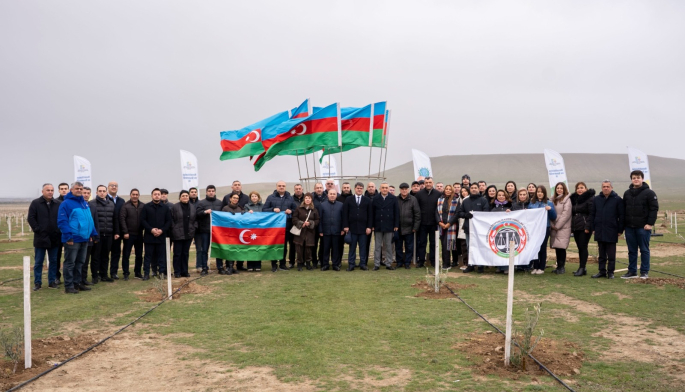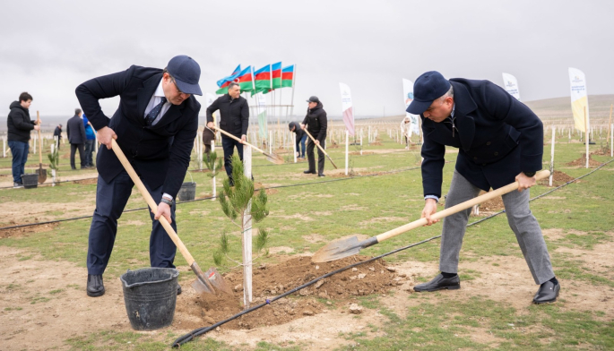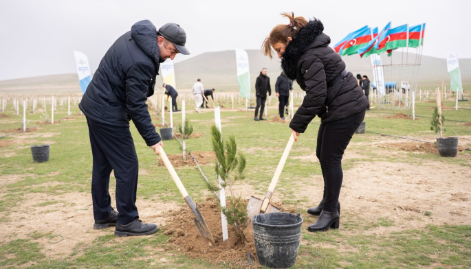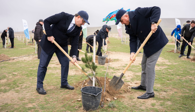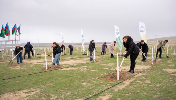 Tədbir çərçivəsində Abşeron yarımadasının torpaq-iqlim şəraitinə uyğun Eldar şamı və zeytun ağacları əkilib.