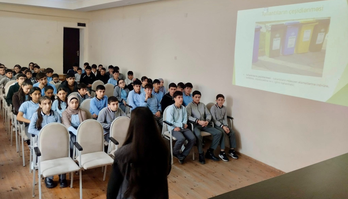 Görüş zamanı şagirdlərə tullantıların azaldılması, təkrar emal və ekoloji məsuliyyət barədə məlumat verilib, maarifləndirici videoçarxlar nümayiş olunub. Tədbirin sonunda məktəblilərin mövzuya dair hazırladıqları rəsmlərdən ibarət sərgi təqdim olunub.