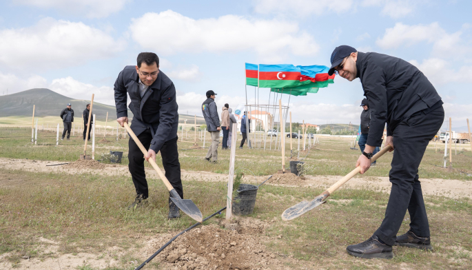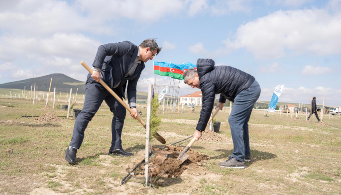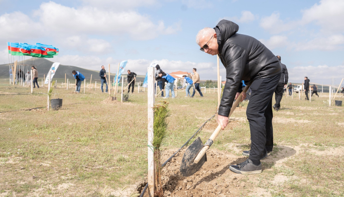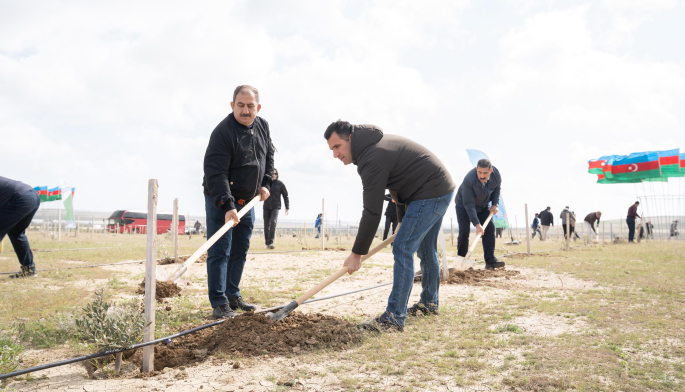 Tədbir çərçivəsində Abşeron yarımadasının torpaq-iqlim şəraitinə uyğun Eldar şamı və zeytun ağacları əkilib.