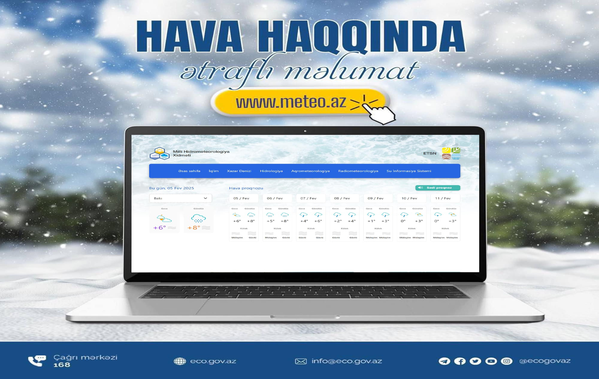 Qeyri-sabit hava şəraiti ilə əlaqədar əhalini ehtiyatlı və diqqətli olmağa çağırırıqSinoptiklər tərəfindən əvvəlcədən verilən xəbərdarlıqlara görə, yaxın 3 gün ərzində ölkə ərazisində qeyri-sabit, yağıntılı və küləkli hava şəraiti hökm sürəcək, dağlıq və dağətəyi ərazilərdə qar yağacaq, yollar buz bağlayacaq.