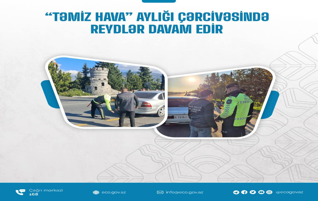 “Təmiz Hava” aylığı çərçivəsində reydlər keçirilibEkologiya və Təbii Sərvətlər Nazirliyinin Dövlət Ekoloji Təhlükəsizlik Xidmətinin və Daxili İşlər Nazirliyinin Baş Dövlət Yol Polisi İdarəsinin əməkdaşları tərəfindən “Təmiz hava” aylığı çərçivəsində birgə reydlər keçirilib.
